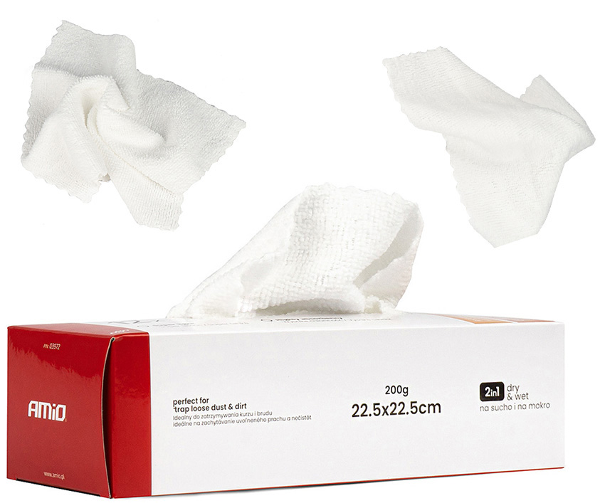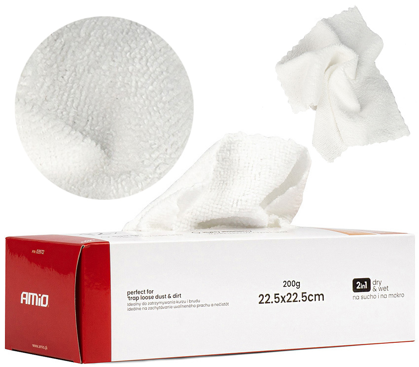 Chusteczki ściereczki z mikrofibry pudełko zestaw 12 szt. 22,5×22,5 cm 200g AMIO-03972