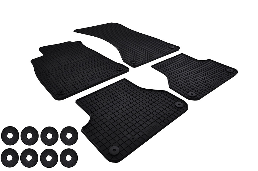 W komplecie oryginalny system mocowań (stopery okrągłe) we wszystkich dywanikach