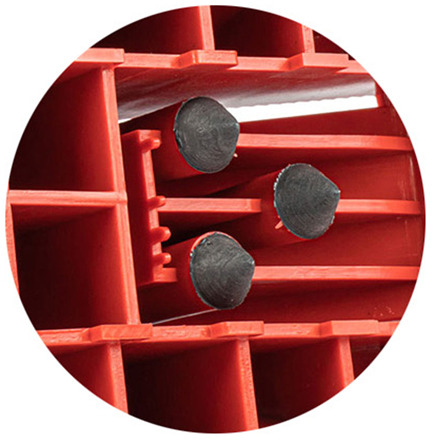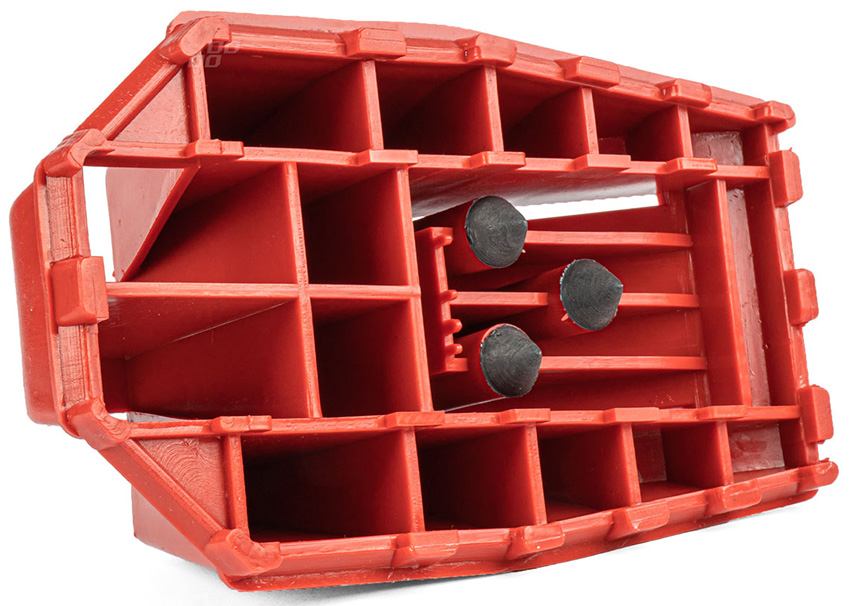 ✅Specjalne kolce, które wysuwają się w podłoże w momencie najechania pojazdu na klin pełnią rolę hamulca.
