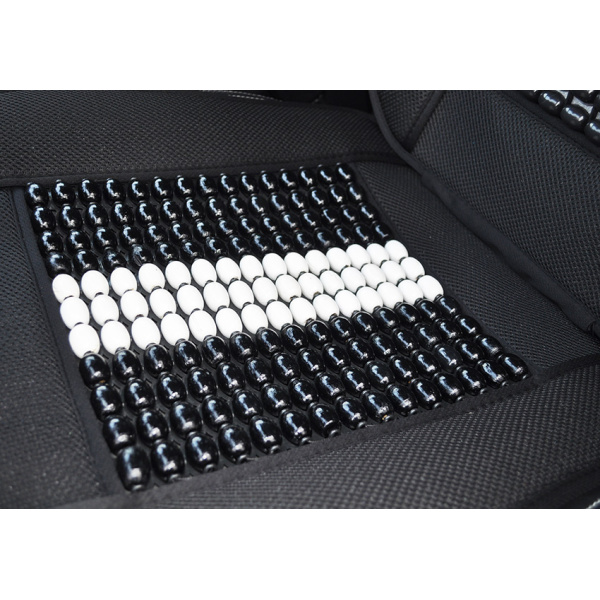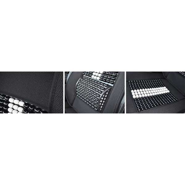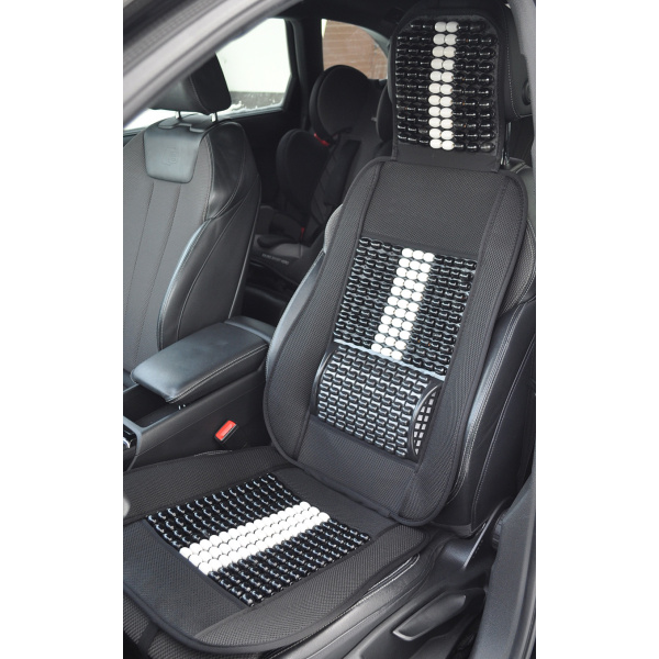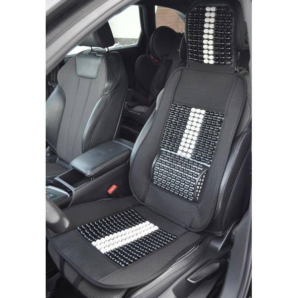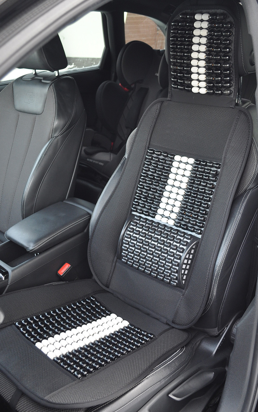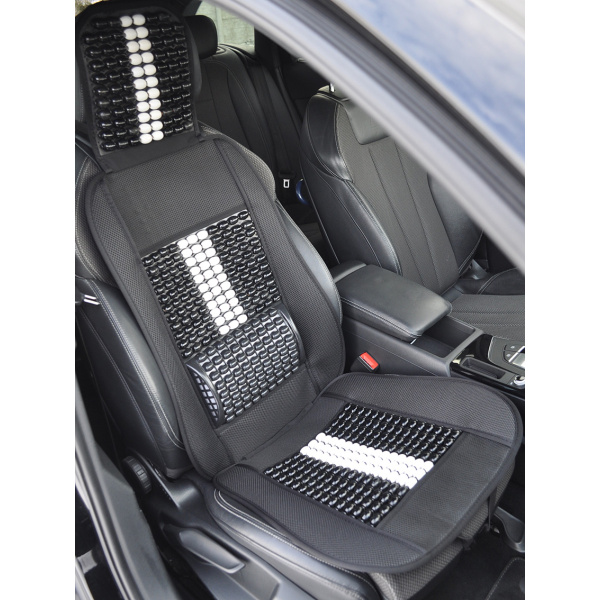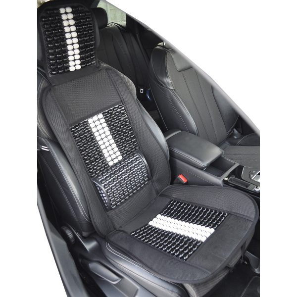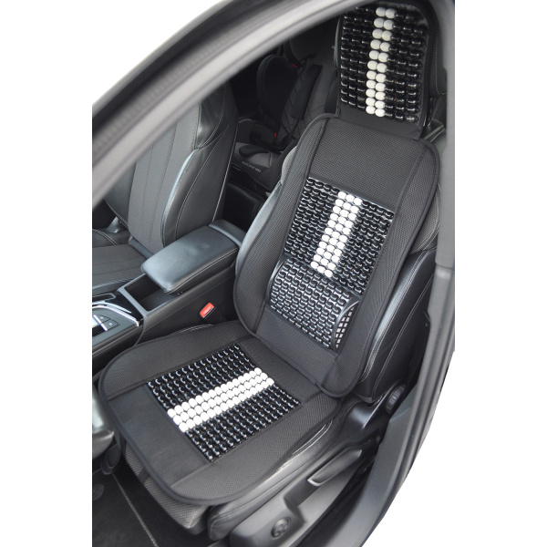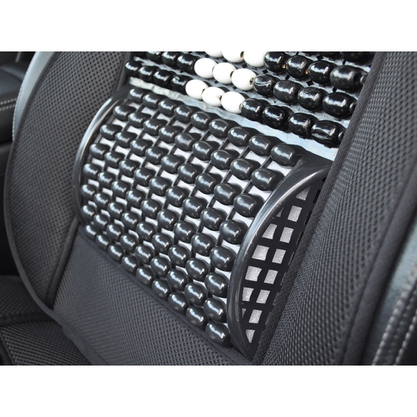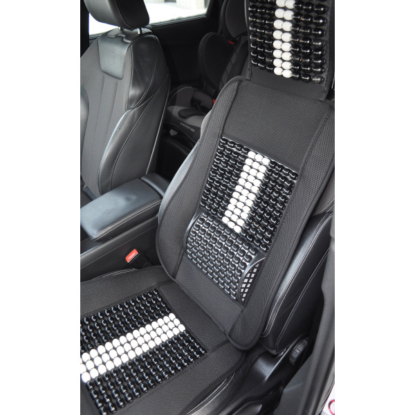 Mata profilowana na fotel samochodowy z zagłówkiem wykonana z drewnianych koralików spleciona mocną żyłką.