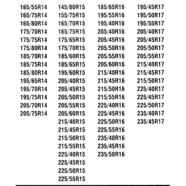 195/75/14 205/50/15 215/55/16 225/45/17